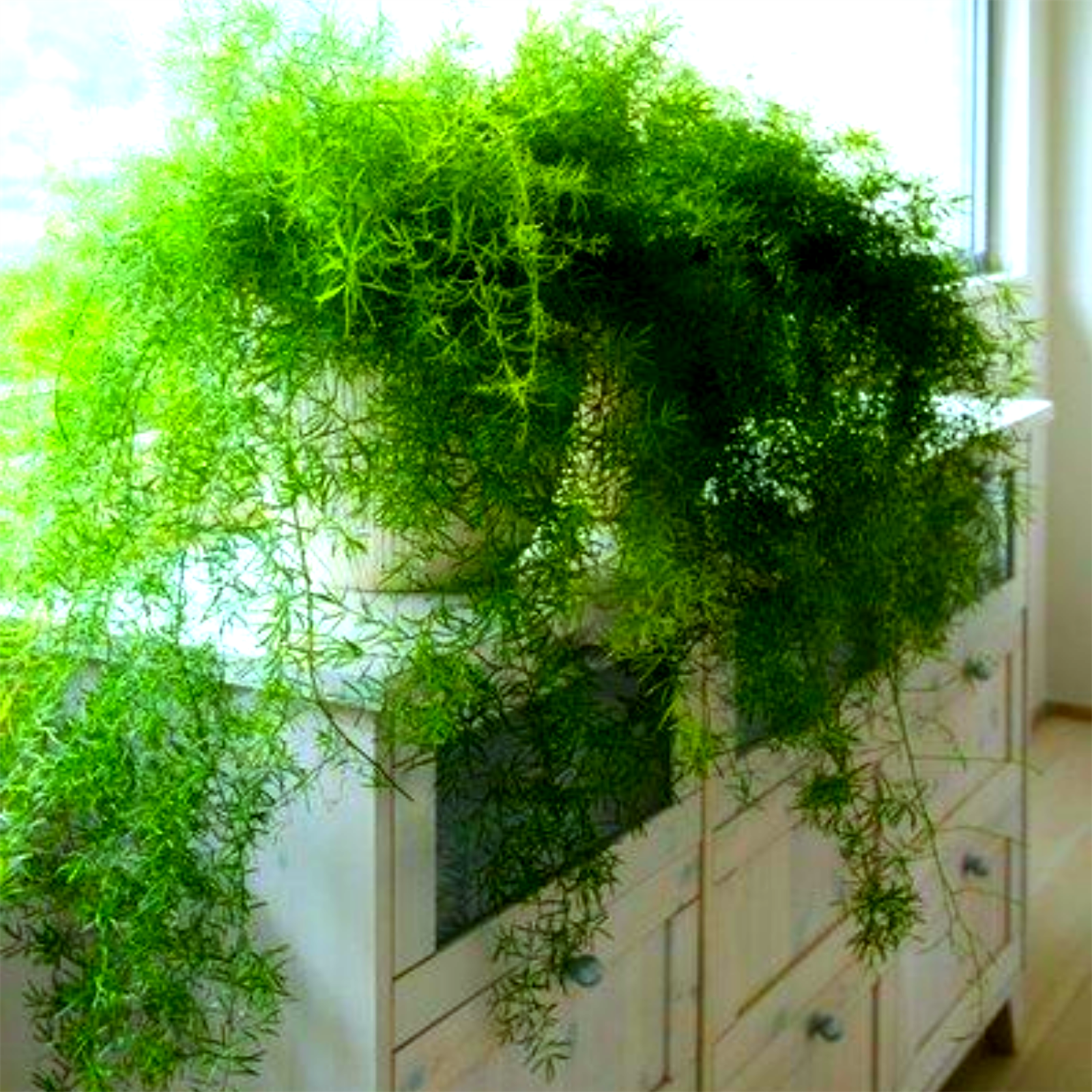 Спаржа плотноцветковая мазепа - низкорослое декоративно-лиственное растение с компактным габитусом. У этой крепкой спаржи изогнутые древесные стебли с тонкими листьями, похожими на папоротник.