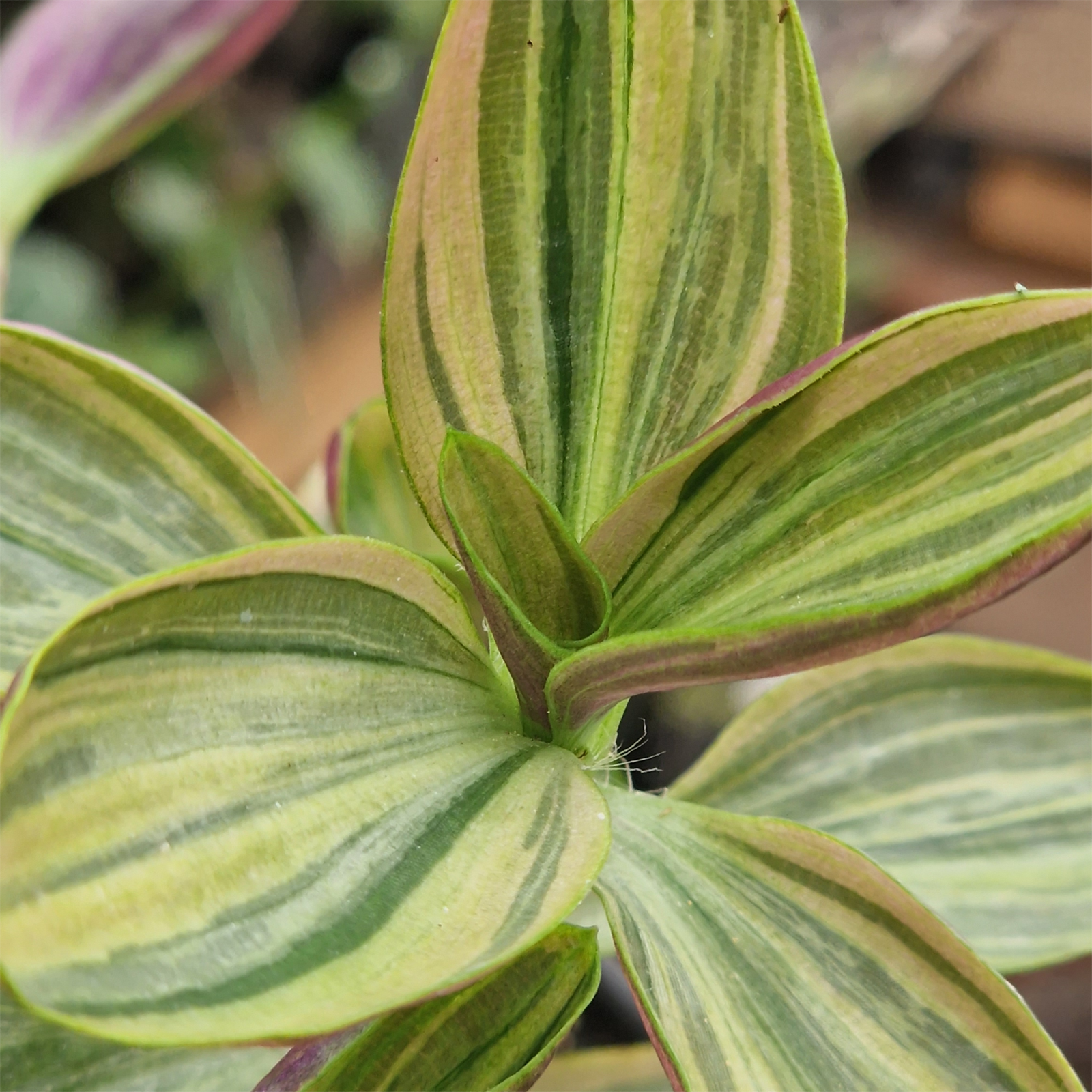 Вариегатная, пушистая традесканция с ярко -выраженной желтой полоской, опушенный лист, кустовая